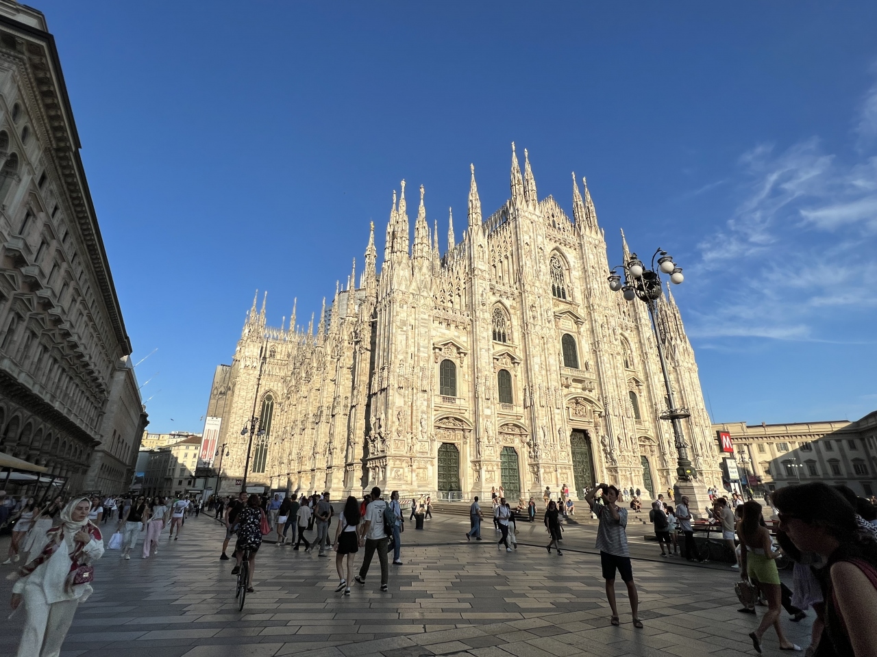 ドゥオーモの西側が大きな広場になっており、日差しを遮るものがないため、夕方に行くと建物全面に陽が当たって、まるで大聖堂が光っているかのように見えました。オススメです。