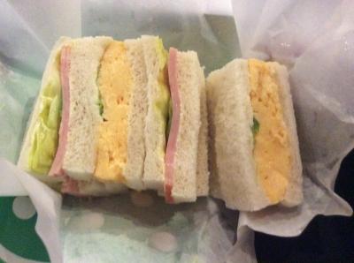 ゆっくり食べる時間がなかったのでお持ち帰りでハム・たまごサンドをお願いしました。
