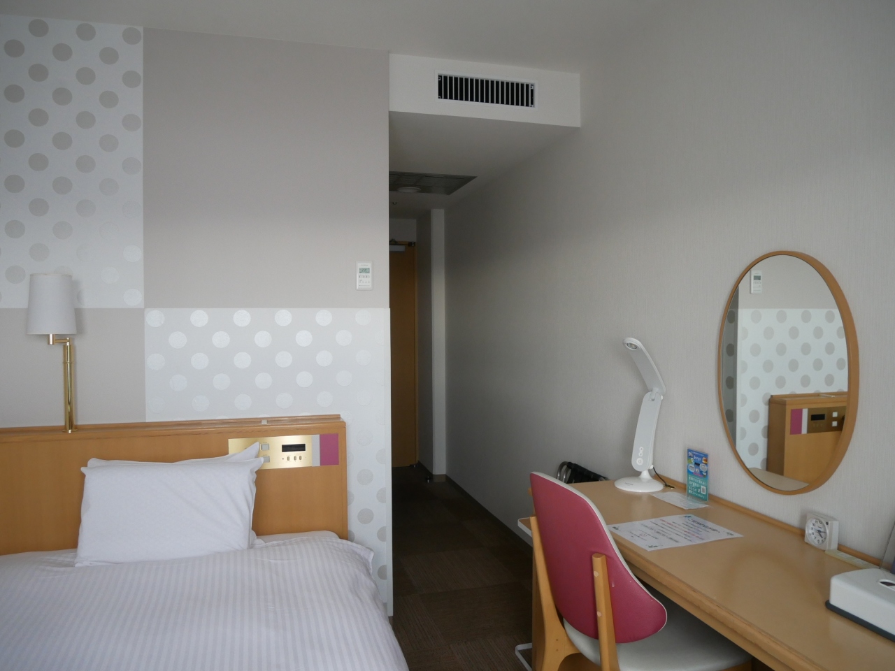 シングルに泊まりましたが、部屋は狭いですが、必要なものは揃っていて女性はチェックイン時に化粧水などのアメニティがもらえて助かりました。