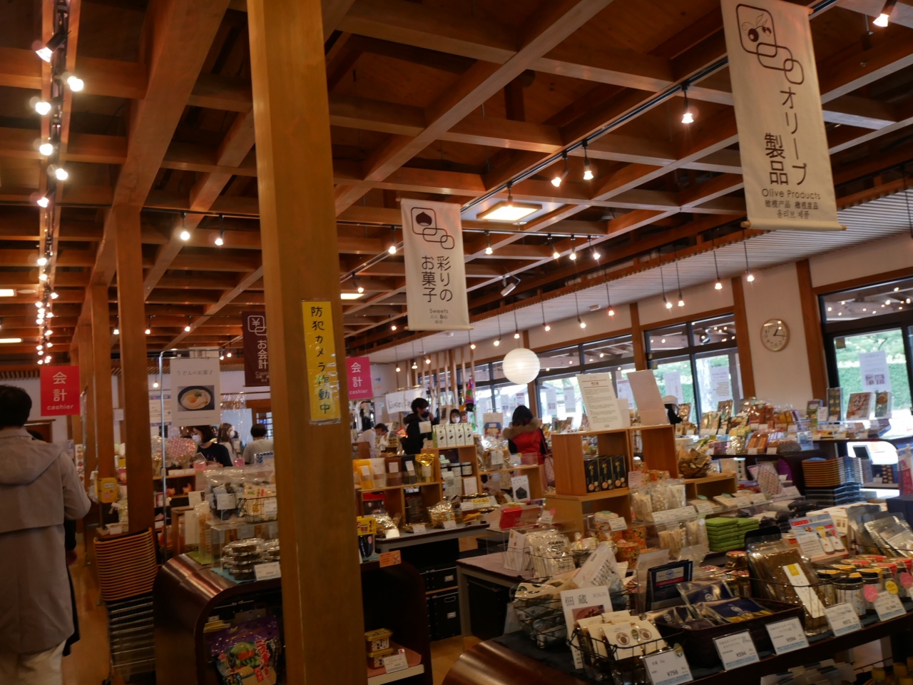 栗林公園を出てすぐのところにあるかがわ物産館でまだ新しいと思われる木の建物のお店です。