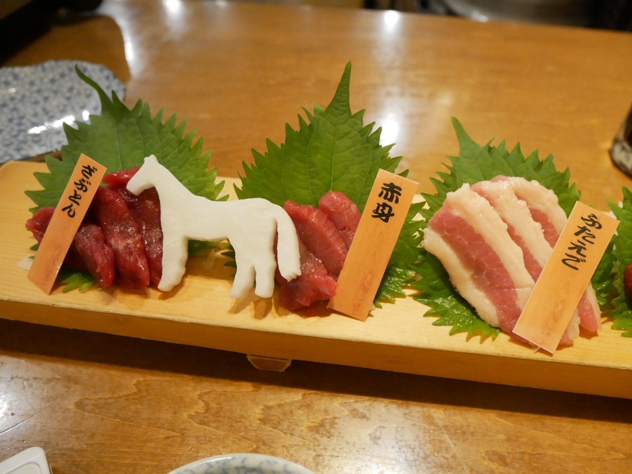 馬肉の焼肉を食べている人も多かったですが、馬刺し目当てだったので馬刺しの盛り合わせを注文。