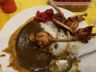 名物らしいチキンカレーを注文しましたが、このカレー、チューリップのチキンがカレーの上にいくつも乗っているという独特のスタイル。