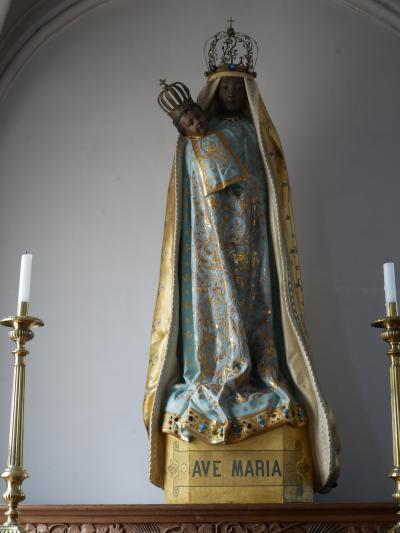 内部の黒いマリア像やステンドグラスのような窓絵などがあり見所が多く国の重要文化財に指定されているのも納得です。- 旅行時期