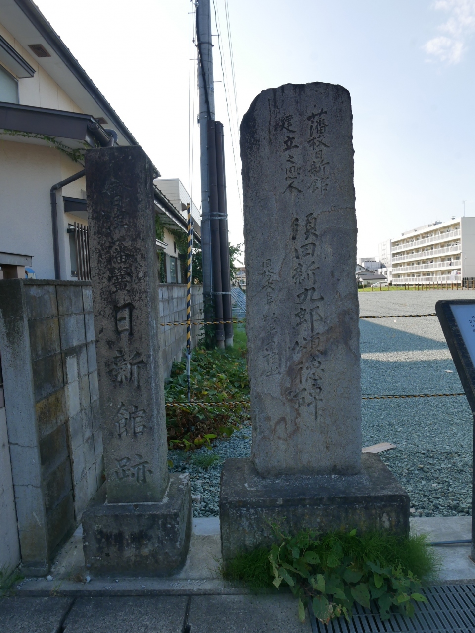 忠臣蔵で有名な赤穂義士の生みの親と言われる山鹿素行の生誕地と上杉景勝の側近直江兼続の屋敷の跡を示す石碑が同じ場所にありました。