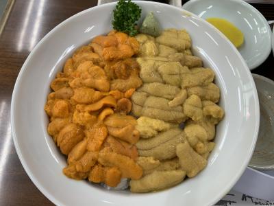 バフンウニもムラサキウニも食べたかったので赤白ハーフ丼を注文。