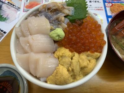 お昼はもちろんうに丼と決めていたものの本数の少ないバスしか移動手段がないためいろいろ考えて神威岬まで歩いていけないこともなく、かつ口コミの評判もよかったこちらのお店に決定。