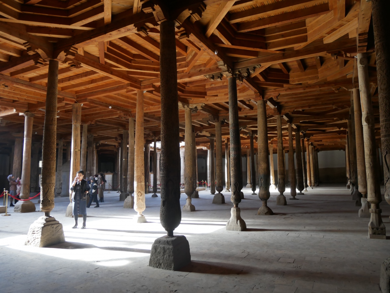 中は広くたくさんの木の柱が並んでいて柱にはそれぞれ彫刻が施されています。