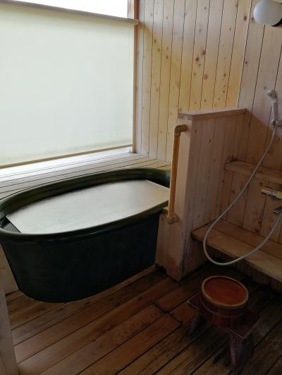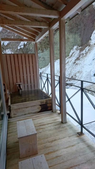 部屋についている露天風呂は放流式ではないため追い炊きをして利用するかたちになっています。また、近くに民家もあるため女性は使用しづらい作りになっています。