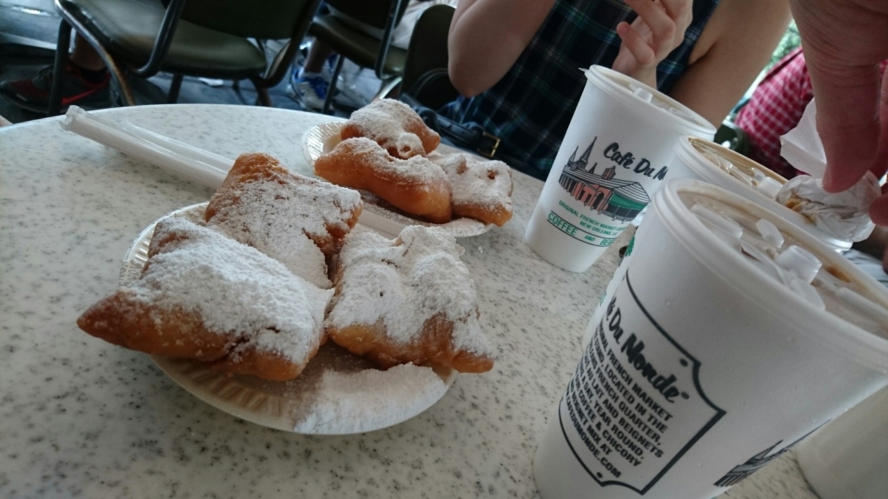 チコリ入りのカフェオレと、粉糖たっぷりのベニエはとても美味しいです。