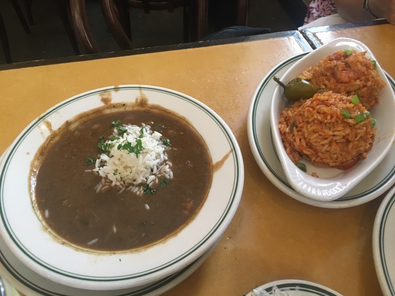 ジャンバラヤとサラダを3人でシェア。