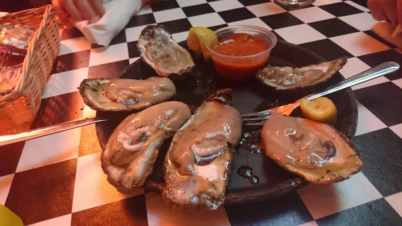 ダンナと娘で、生ガキのハーフと、オーブンで焼いたカキのハーフを注文