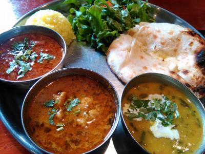 カレーは辛口マトン、中辛チキン、マイルド豆カレーで、どれも満足。