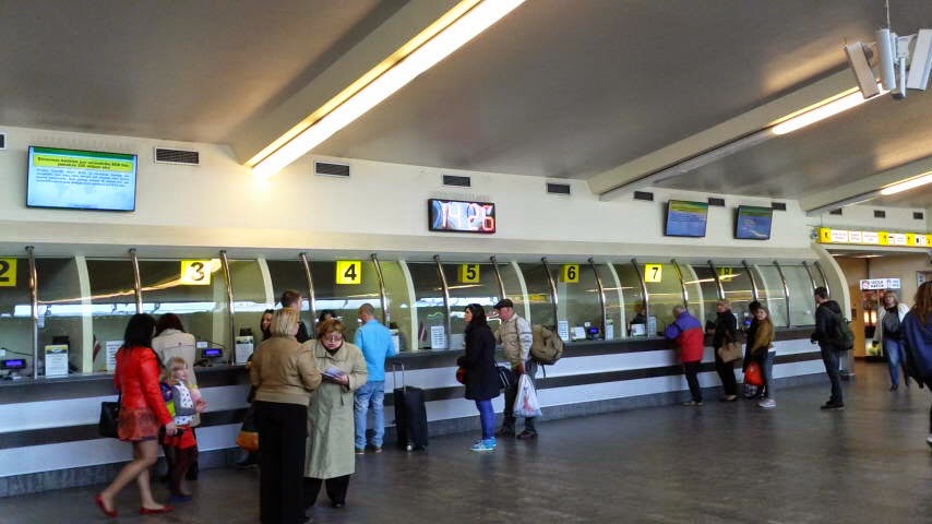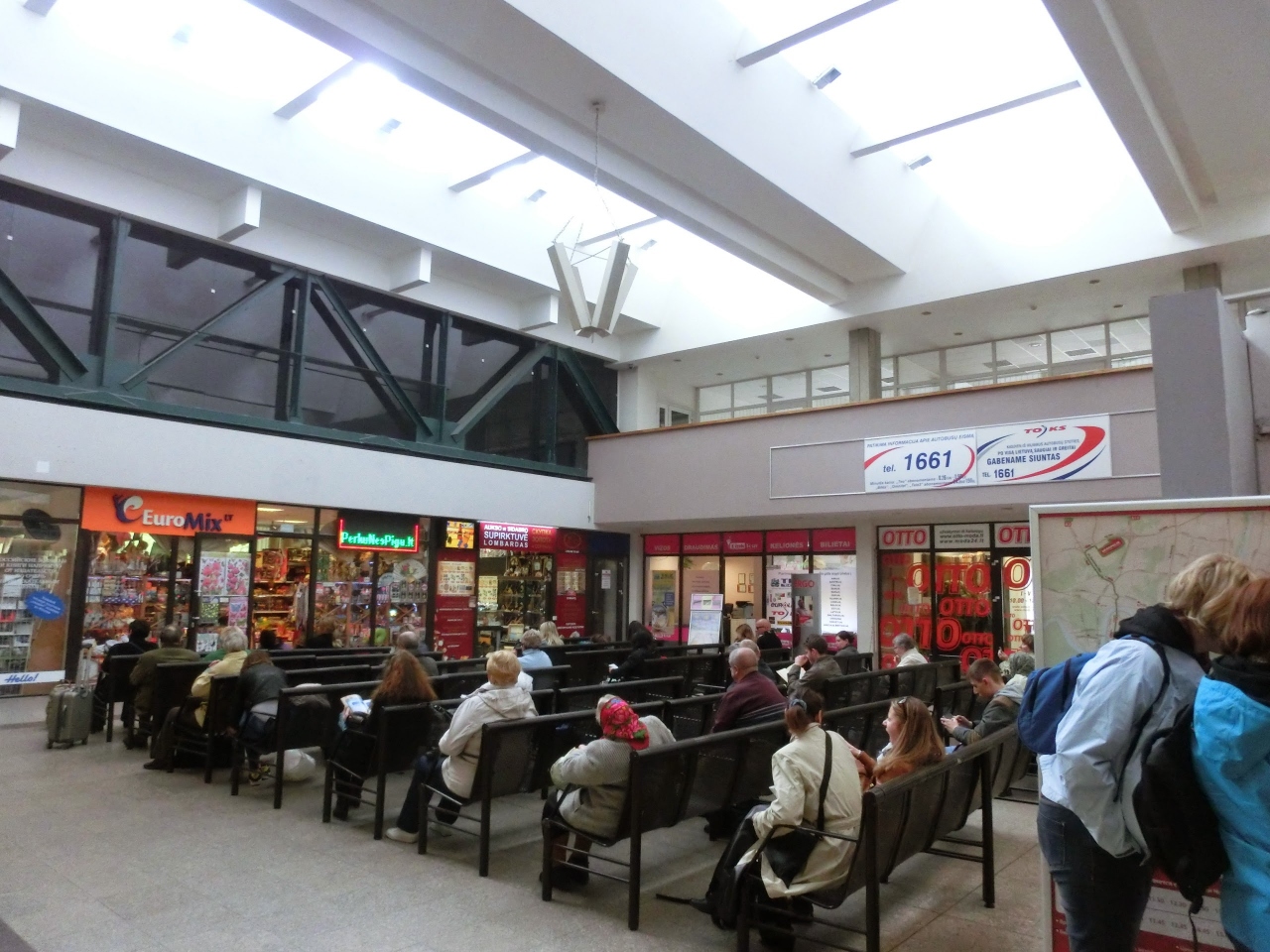 11時過ぎにシャウレイからここに到着し、夜の10時30分にワルシャワへ向けてここを出ました。昼間はいいですが、夜になるとほとんど明かりもなくターミナル内の店も完全に閉まり、ちょっと薄気味悪い感じです(危ないとは思いませんでしたが)。待合室は解放されていましたが、夜行バス利用者で溢れ返っていました。