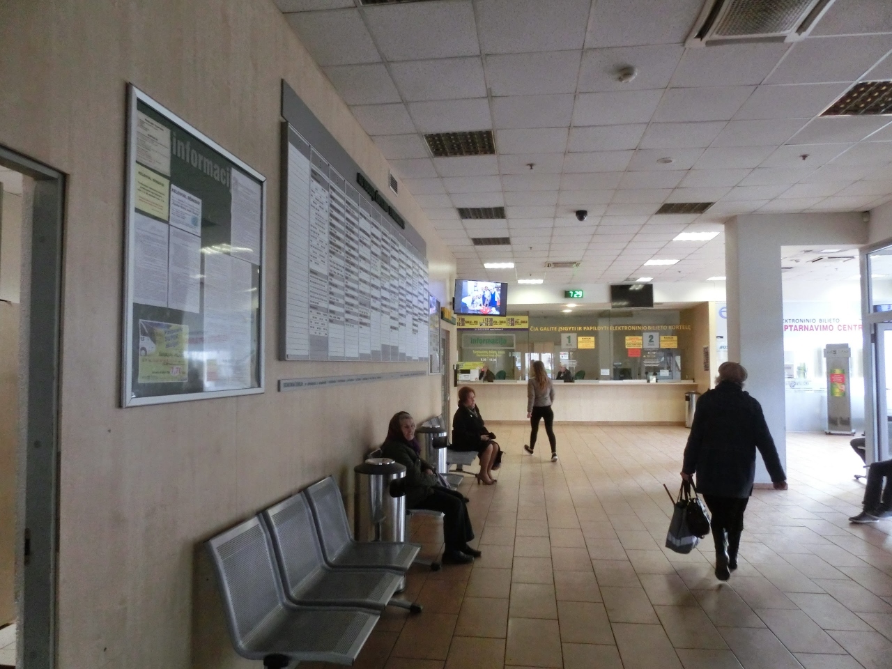 鉄道駅から徒歩5分程度のところにあり、大型ショッピングセンターに隣接しているため、食事などには困りません(逆にここを離れるとあまり店がない)。乗り場は少なく、タリンやリガのような発車時刻を示す電光掲示板はありませんでしたが、同時間に複数のバスが出発するほど混雑もしなさそうで、実際のところ特に迷いませんでした。待合室はあまり広くありません。