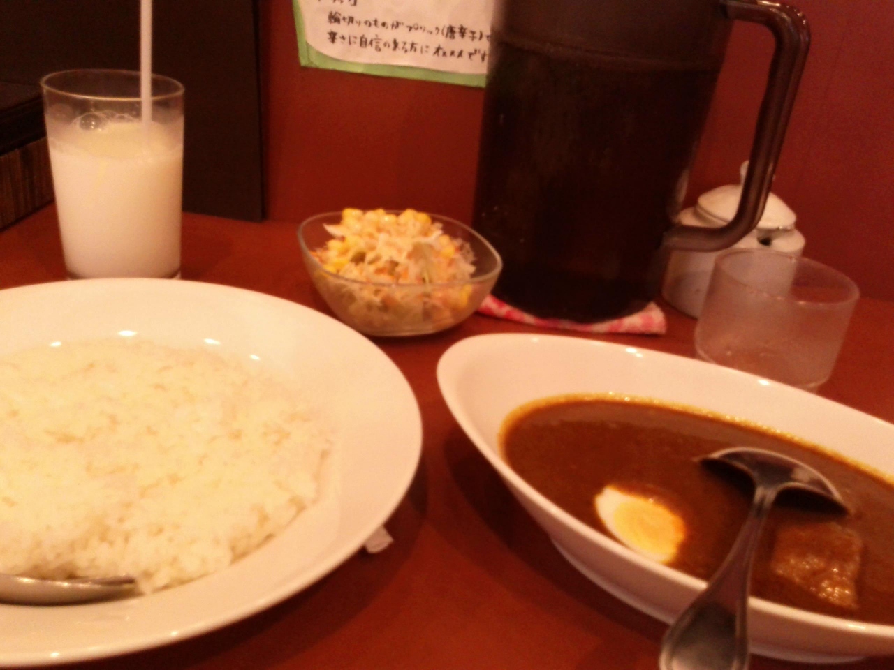 可愛い感じで入りやすい店構えとは裏腹に、出てくるカレーは結構辛いというレビューを食べログ?で見ましたが、実際に行ってみてその意味がわかりました。プレーンカレー、激辛とまではいわないまでも、見た目からして非常に辛いです。バターチキンカレーにするとバターでちょっと辛さが和らぐみたいです。