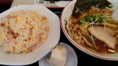 870円のチャーハンセットを注文。ラーメン、半チャーハン、冷奴が付き、チャーハンは半分とはいえなかなかのボリューム。ダブル炭水化物で食べ切ったらお腹いっぱいになります。