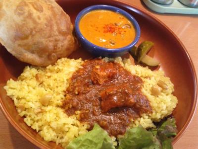 1,180円でカレー2種、揚げパン、ピクルス。スパイスが効いていて、ココナッツカレーはそれほど辛くなかったはずなのに気付けば汗がジトジトと出ていました。日本人に合うようにアレンジされたカレー、評判通り美味しいです!