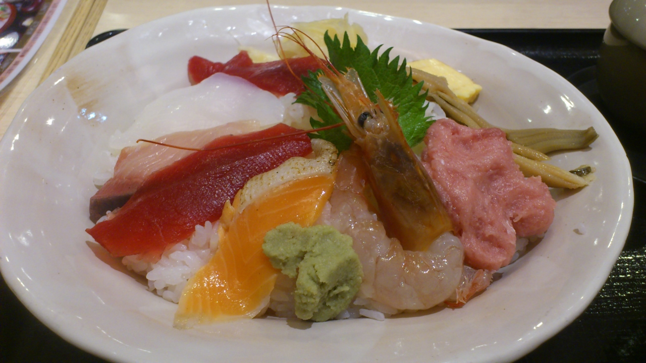 見た目は高そうな感じですが、一番安いにぎりとちらし寿司は1,000円未満。味噌汁と茶碗蒸しも付いてきます。特別美味しいとも思いませんが、場所を考えると1,000円未満でゆっくりできて普通の寿司が食べられるのは有り難いです。- 旅行時期