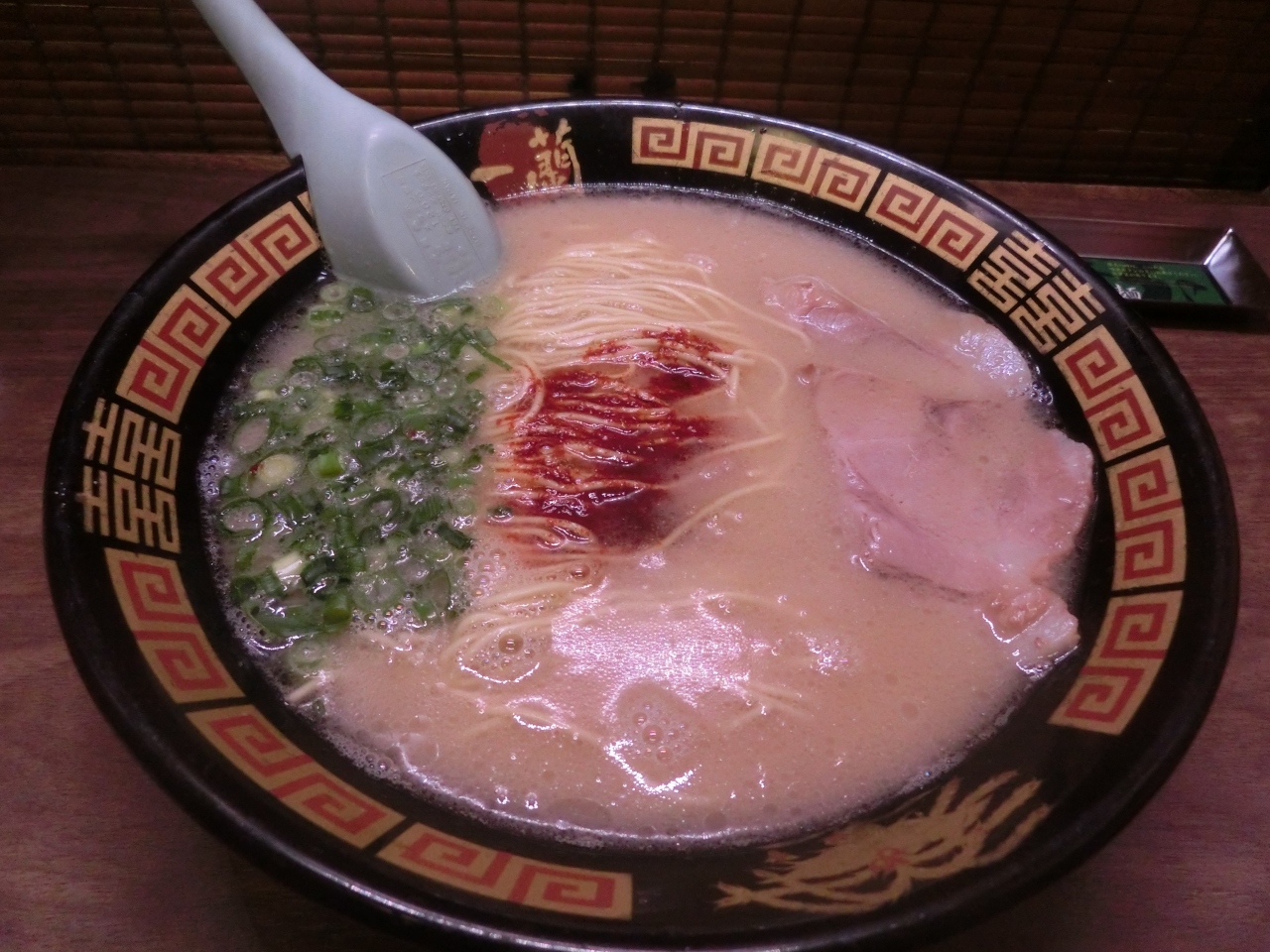 思い付きで一蘭へ行くことに。博多で5年前に食べて以来だと思います。壁で仕切られた座席はよく覚えていたものの、紙にいろいろ書いてボタンを押すという作法は完全に忘れていました。。