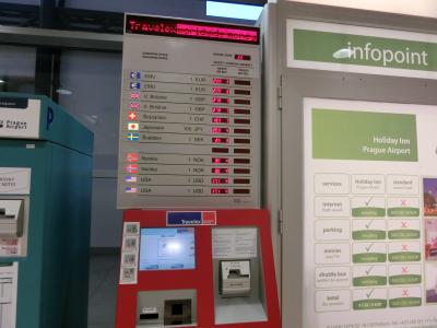 プラハ・ルズィニェ空港の到着ロビーにはATM、自動両替機、有人の両替所がありました。わたしは最初の1万円は自動両替機でチェココルナに両替しましたが、手数料を引かれて1,990コルナでした。1コルナ=約5円!レートとしてはかなり悪いです。