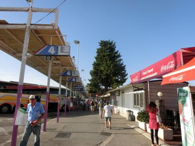 外に出るとヤシの木が生えていて、リゾート地に来たぞ!という旅情が高まります。向かって右の少し広いスペースに、旧市街へ向かうクロアチア航空のバスが止まっているので、タクシーを使わない場合はこれに乗って移動しましょう。運賃は30knで、車内で支払います。クレジットカードで払っている人もいました。- 旅行時期