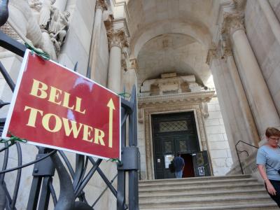 おそらくスプリットへ来たらまず誰でもこの上へ登ろうとするのではないでしょうか。外から見る大聖堂も立派な建物ですが、狭い階段を登れば、高い場所から港方面を望むことができます。