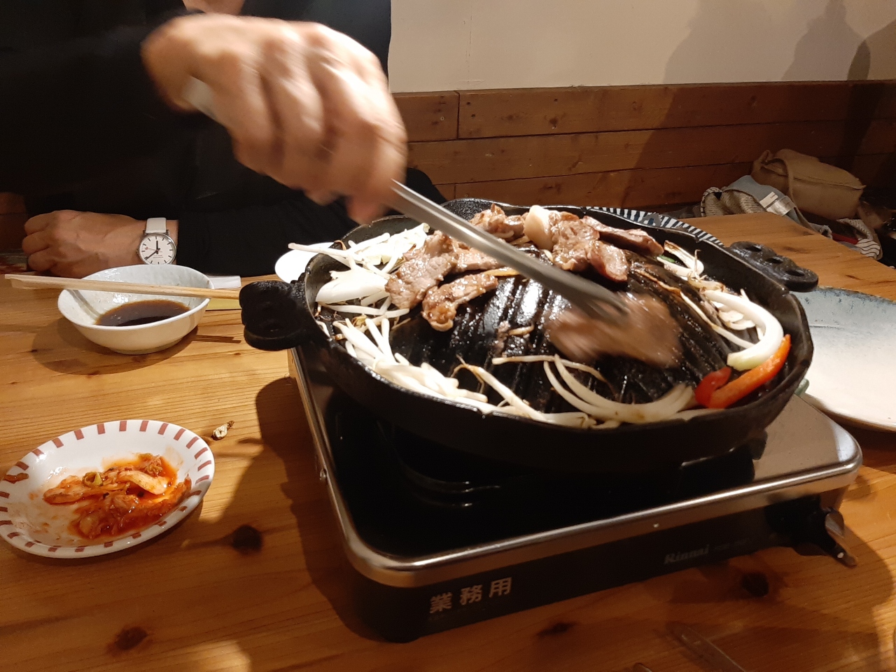 日ごろジンギスカンは食べないので迷っていたら、肉が新鮮でうまいと地元の人に紹介された。店はすすきの外れ、やや怪しげな雑居ビルの4階にあった。変な店だったら帰るかと思ってドアを開けたら、多くのお客さんで賑わっていた。メニューは少ないが、肩ロースは厚みもよく、くさみもない。とてもうまかった。地元の人が通う隠れ家的な店のようだ。札幌最後の夜のいい思い出になった。