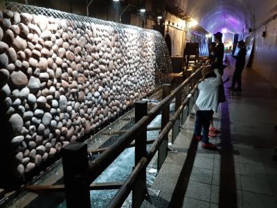 旧国鉄高森線と高千穂線を結ぶ工事は度重なる出水事故で開通工事を断念、湧水トンネルに生まれ変わった。今では高森町の観光スポットで貴重な水源地ともなっている。トンネルは2キロ。毎分32トンという冷たい湧水が流れている。その冷気でトンネルに入ると体はゾクゾク、まるで冷凍庫の中にいるよう。猛暑のなか快適だった。