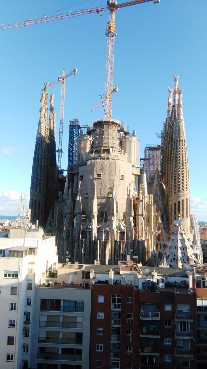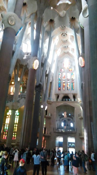 カウディが心血を注いだ奇抜な大教会。しかも今なお建設中。予備知識があったため外観はさっと見て入ってしまったが、聖堂の高い天井から降り注ぐ陽光や、ステンドグラスのカラフルな光は素晴らしく感激した。聖なる光とはこういうことかと。さらに鐘楼に上ってカウディらしい造形を間近に見て、改めて周囲から眺めれは感慨ひとしおだった。