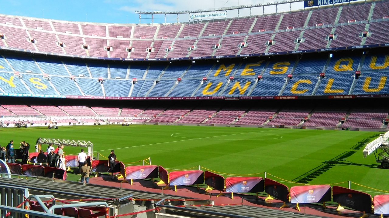 滞在中に試合がなかったため、仕方なくスタジアムツアーにでも行ってみるかと軽い気持ちで訪ねたが、本当に行って良かった。大正解だった。メッシら選手と同じように実際の通路からピッチに上がり、10万人収容の大スタジアムを見上げたときは感激した。展示室にはチームの歴史や数々の優勝トロフィーが飾られている。中でも秀逸なのがシュートシーンなど名場面の映像。大スクリーンが2個所あり魅せられた。チケット23ユーロは割高だが、中身にはカネで買えない感激とやらもある。2時間では見切れなかった。サッカーファンにはぜひものだ。