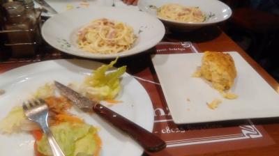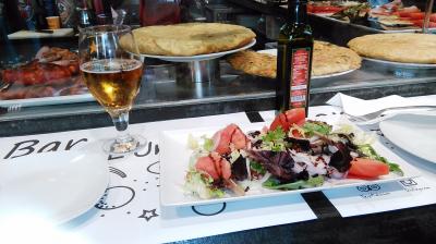 サグラダ・ファミリア聖堂近くのホテルだったので、夜のガウディ通りの散策を兼ねて入った。店は角にあり、明かりが通りに漏れて,いい雰囲気だった。スペインでピザも悪くないかと思って入ったが、地元料理もなんでもある食堂だった。午後8ごろには満席になったので7時半ごろまでに入った方がよさそうだ。結局ピザは頼まず、スペイン風オムレツのトルティーリャなどで十分だった。