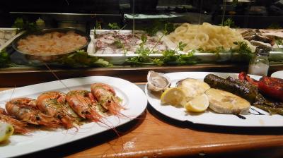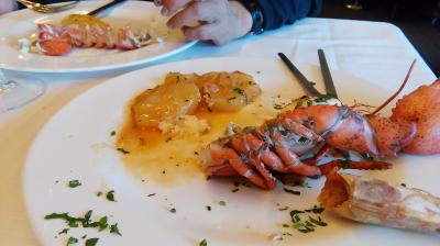 日本人観光客も多いのだろう。日本語メニューがあり、あらかじめ決められた料理から選ぶ簡易のコースメニュー(確か日本人に合わせたのか、少量で前菜、メーン、デザートで26ユーロ)があった。陽気な給仕は「このコースが安いよ」と勧めた。確かに一般メニューの半額程度で大エビもそのメーン料理の一つだった。日曜の午後、地元の家族連れも多く大にぎわい。給仕だけで何十人もいそうな大シーフードレストランの喧騒ぶりも旅のいい思い出になった。- 旅行時期