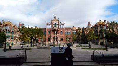 観光客が年間で2700万人にも上り街にあふれているバルセロナで、ここは皆無に等しかった。訪ねたのは月曜の午前10時すぎ。開門直後だったのもあってか、私たち以外の入場者は数人。広い敷地だけに周りにはだれもいない。まだ朝の澄んだ空気が残り、とても清々しかった。同じモデルニスモ建築でも病院だっただけにその装飾性は抑制的で左右対称の建築群は落ち着いていた。朝から観光客が詰めかけた上に派手すぎていささか疲れるグエル公園より断然いい。開門直後をお勧めする。