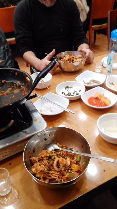 夜はカニや焼き肉などを優先してついタコ鍋は後回し。昼は前夜の飲み過ぎから軽いものになりがちだったが、今回どうしてもと5回目の釜山行で初めて昼食に訪れた。評判通りうまかった。頭がカーとなる辛さが甘い韓国ビールや焼酎に良く合った。