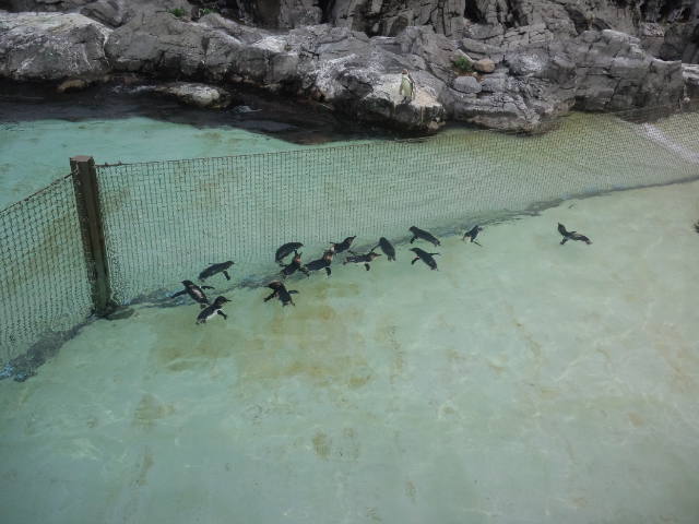 ペンギンの子どもたちが 親とは別の所に囲われていました。