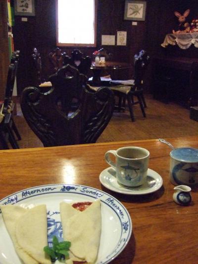 重厚でセンスの良いアンティークな調度品で設えた店内では、まだ秋も始まったばかりだというのに10℃ほどに冷え込んだ外気を一瞬忘れてさせてくれるような優しい暖かさが広がる薪ストーブが焚かれ、さっき神社で引いたおみくじなどをもう一度真剣に読み直しながら美味しいコーヒーやそばクレープを頂いているうちに、次のバスの時間や今いる場所をつい忘れてしまいそうになる雰囲気のお店です。