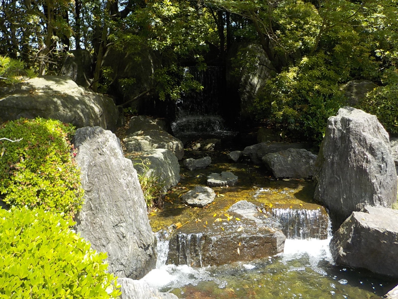 - 池を中心にした回遊式庭園です。人口の滝も配した庭園です。
