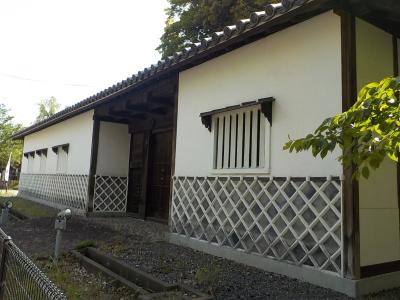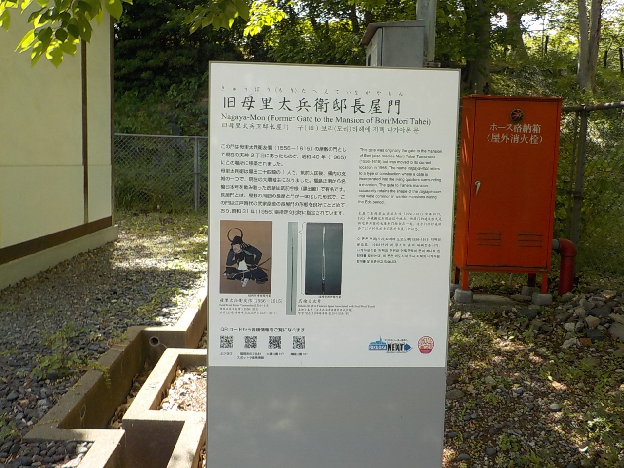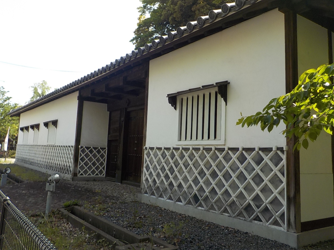 黒田二十四騎の一人である母里太兵衛は黒田家の重臣で、福島正則から名槍日本号を飲み取った話はあまりにも有名で「黒田節」で知られる人物です。屋敷は福岡市中央区天神二丁目にあったそうですが、約60年前に現在地に移築されました。長屋門は典型的な武士の長屋門の形式で、入母屋造りです。、正面は本瓦葺で、やや右手に門を設置しています。外壁は漆喰、腰壁はなまこ壁で、窓は格子窓です。
