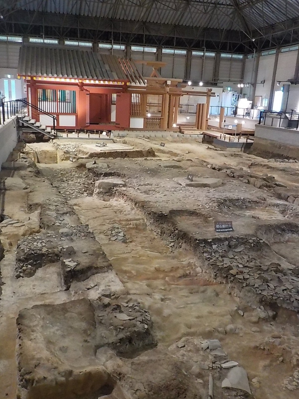 - 鴻臚館跡展示館は高低差数mほど階段を上ることになります。