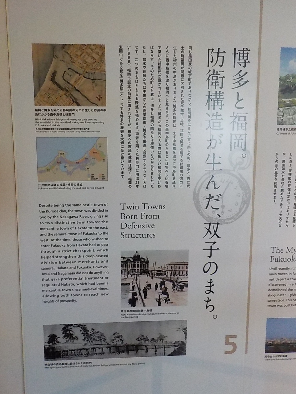 黒田如水(官兵衛)と長政親子が築いた福岡城の概要を紹介している施設です。ビデオではかっての福岡城の姿をCGで再現していますので、福岡城の全体像は掴みやすいと思います。その後、館内の展示を見ればより知識が増えて行くと思います。ビデオの中には天守閣が出て来ますが、ナレーションでも言っていたとおり、天守閣があったかどうかはいまだに明確でないようです。その後、福岡城跡を散策に出かけますが、必ず地図をもらって行くことをお薦めします。かなり広いし目標物が少ないので道に迷わないためです。