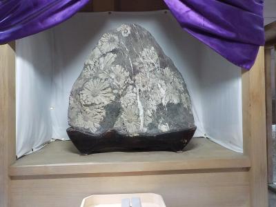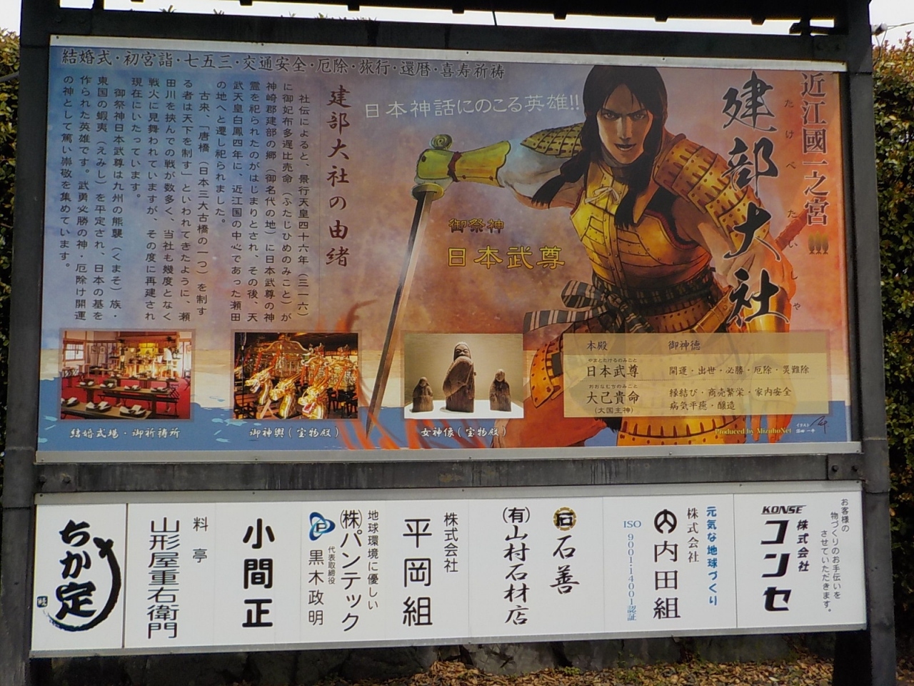 瀬田の唐橋を渡って直進すると、歩いて5分ほどで建部大社参道があります。一の鳥居をくぐりしばらく歩くと駐車場があります。ここから左に曲がると拝殿が見えてきます。拝殿までにはご祭神である日本武尊を紹介するパネルが置かれています。ご神徳は開運、出世、必勝、厄除けなどとありますが、源頼朝が石橋の戦いで負け、伊豆蛭ケ島に流される途中に源氏再興を祈願し、その願いが叶ったので、以来、武運出世の神として信仰を集めています。境内の拝殿前にはご神木である三本杉があります。樹齢1300年の巨木です。拝殿に参拝した後に左手に行くと、丸みがあるパワーストーンが置いてあります。これに願い事を書いてお参りすると願い事が叶うそうです。さらに本殿の裏手に回ると、菊のご紋が鮮明な菊化石があります。すぐ横にはさざれ石、さらに神鏡なども見られます。