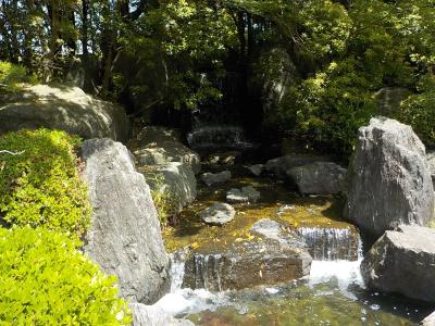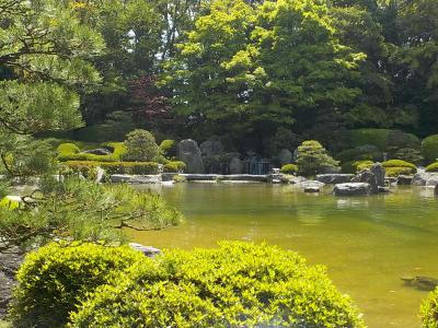 大濠公園に行くと必ず訪れる第空くな日本庭園です。無料で入れる歳になったのでありがたく拝観させていただいています。東側の重厚な感じがする門をくぐると、毛氈を敷いた長椅子があります。ここから中心にある池の周囲をめぐって、庭の景色を楽しめます。途中、池を渡る自然石の石橋、滝があってアクセントになっています。今回は新緑が非常に綺麗でしたが、秋の紅葉の季節もよいです。残念なのは外国人訪問者です。もちろん全員ではないですが、通路以外は立入禁止の表示があっても無視して、庭に入り込んでいます。庭が傷んでしまうことが分からないのでしょうか?残念ですし不快です。