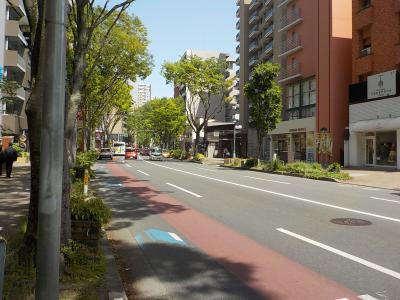 福岡市内を横断するような感じの国道が202号線ですが、一部が「国体道路」と呼ばれています。その一部が「けやき通り」と呼ばれて警固交差点から600mほどの区間は両側に大きなけやきが植えられて街の雰囲気が違います。夏の暑い日にもこの辺りは日陰になって涼しい道を歩くことができます。オシャレな感じの飲食店が多いと思いますが、天神や博多駅の再開発が進んでいること、最寄りのの駅がなく、バス中心の交通手段のせいか、以前より活気がなくなってきているように思うのは自分だけでしょうか?