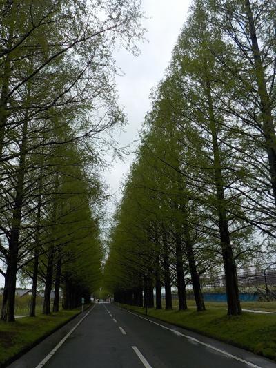 現在はマキノ高原へ続く道ということですが、そもそも地元の人が防風林として植樹したものです。今ではその並木道が2.4㎞にもなり植えられているメタセコイアが500本という気が遠くなるような数字になっています。走っても走ってもメタセコイアという直線道路です。メタセコイアの樹高10m以上になっていますが、この木は自然徳系がきれいになるので手間いらずなんでしょうか?お店の人の話では、新緑の時期が最もきれいと言われてましたが、あくまで主感でしょうね。