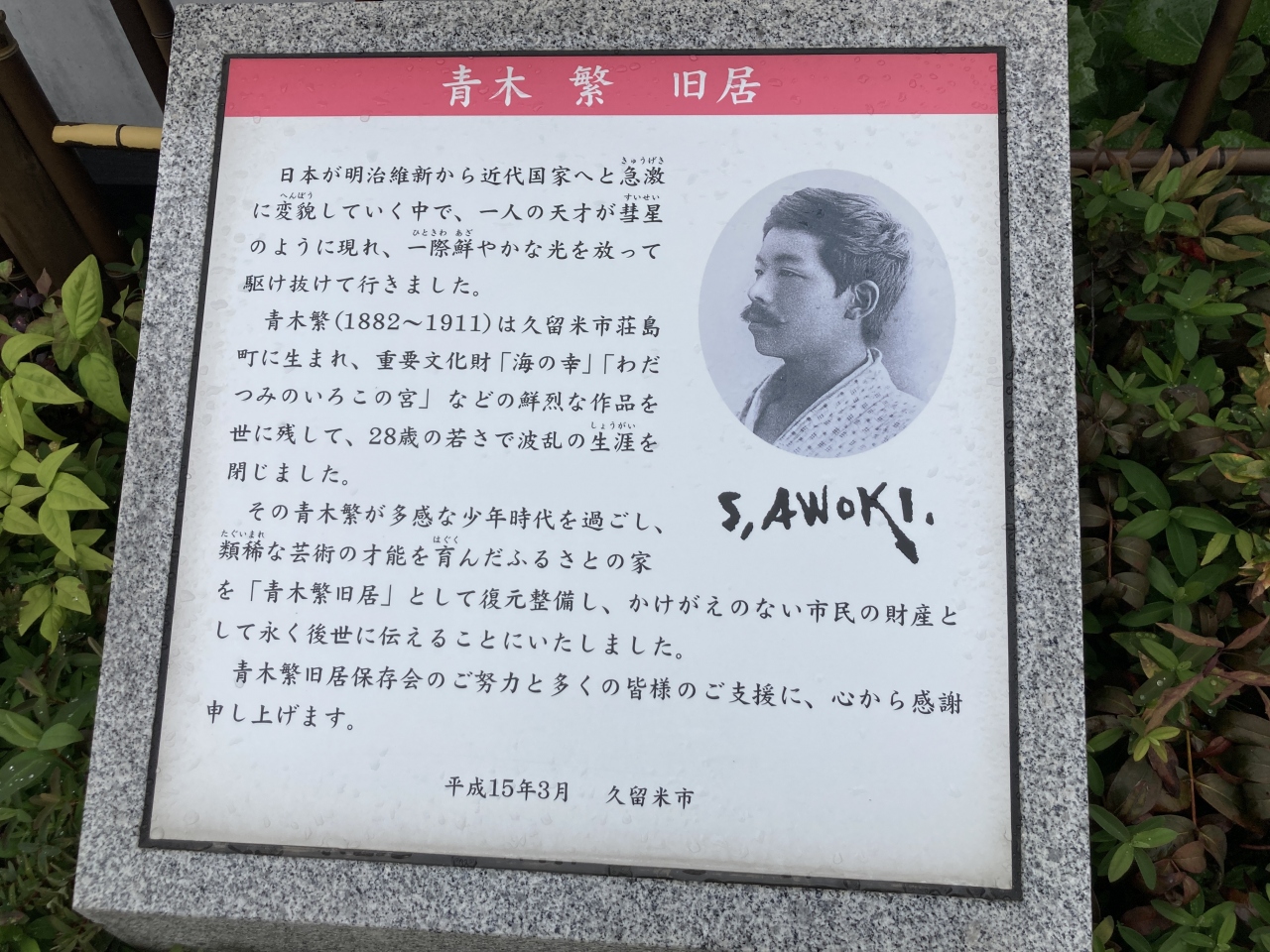 - 近代美術史の残る青木繁の旧居にしては訪れる方が少ないです。
