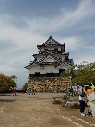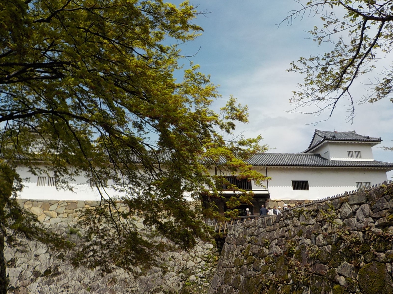 徳川四天王の一人、井伊直政は関ケ原の合戦に勝利した後、その軍功によって石田三成の居城であった佐和山城に入城します。直政の死後、その遺志を継いで家老の木俣守勝が徳川家康の同意を得て1603年に彦根山(金亀山)に築城を開始しました。井伊氏の拠点となるばかりか西国に多かった豊臣方の勢力を監視するための拠点としての役割も持っていました。徳川家の信頼が厚い井伊氏は多くの大老を輩出した譜代大名で、幕末まで井伊氏の居城であった。明治時代には廃城令が出されますが、城は廃城になることを免れ、天守閣は現存しています。附櫓、多聞櫓は国宝に指定されています。その他にも当時の櫓や門など残されて、国の重要文化財に指定されています。急な階段を上って天守閣最上階に、近隣の山々、琵琶湖が望まれます。