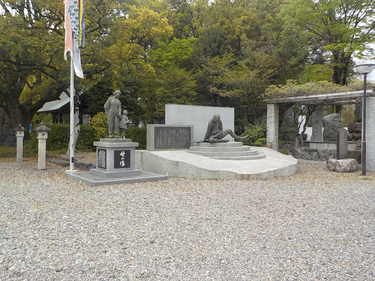 JR彦根駅から彦根城に向かってまっすぐ西に歩き、突き当たったところにあるのが滋賀県護国神社です。彦根城の北側にあって戦地で亡くなられた英霊だけではなく 犬、馬、鳩などの動物の慰霊碑もあります。また兵士の像がありますが、英霊のご家族がこの地に建てられた像だそうです。