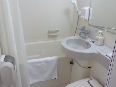 - 部屋のお風呂は足が軽く伸ばせるくらいですし、手狭感はないです。