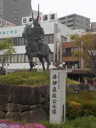 JR琵琶湖線彦根駅西口を出るとまず目につくのが彦根藩祖井伊直政公の騎馬像です。
