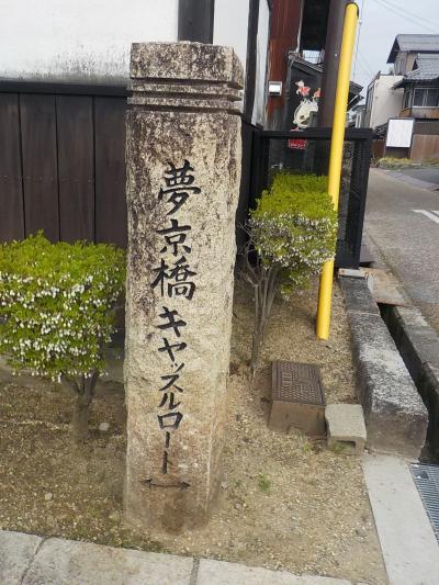 彦根城天守閣から南東方面に歩くと中堀に架かる京橋があります。この橋は一千石以上の武士が居住していた地区と中級以下の武士、商人、職人が居住していた地区を結ぶ橋です。この橋を渡ると本町になりますが、活気のある商人の町でした。本町通りは白壁に格子窓の家並で江戸時代の名残がありました。現在は本町通り沿いの街並みは、古さを残した新しい建物になり、喫茶店、ブティック、食事処、土産物店などが立ち並んでいます。